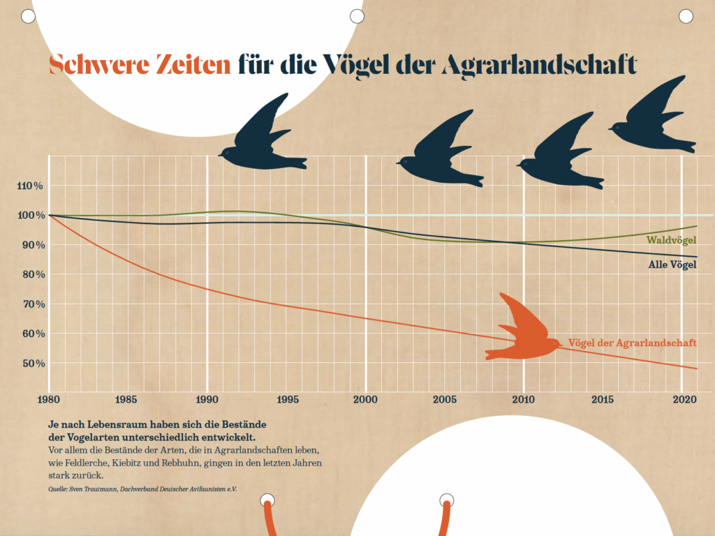 Vor allem im Offenland sehen wir, dass wir beispielsweise das Verschwinden der Wiesenbrüter als wichtige Indikatorart für offene Agrarlandschaften allenfalls verlangsamen, nicht aber aufhalten können. (3)